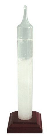 The Storm Glass stands on a Mahogany wood base and is over 9 inches tall.